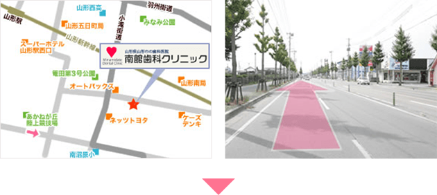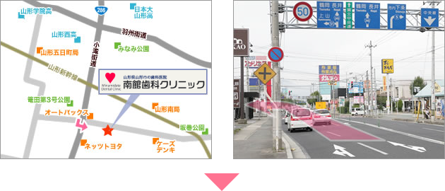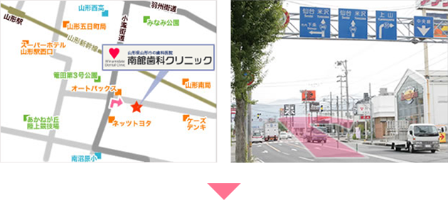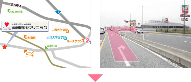 1.国道13号線を直進し、右手にヨークタウンが見えたら右折します。