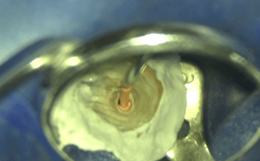 排膿や滲出液などもみられないので、この後根管充填処置(封鎖)を行いました。