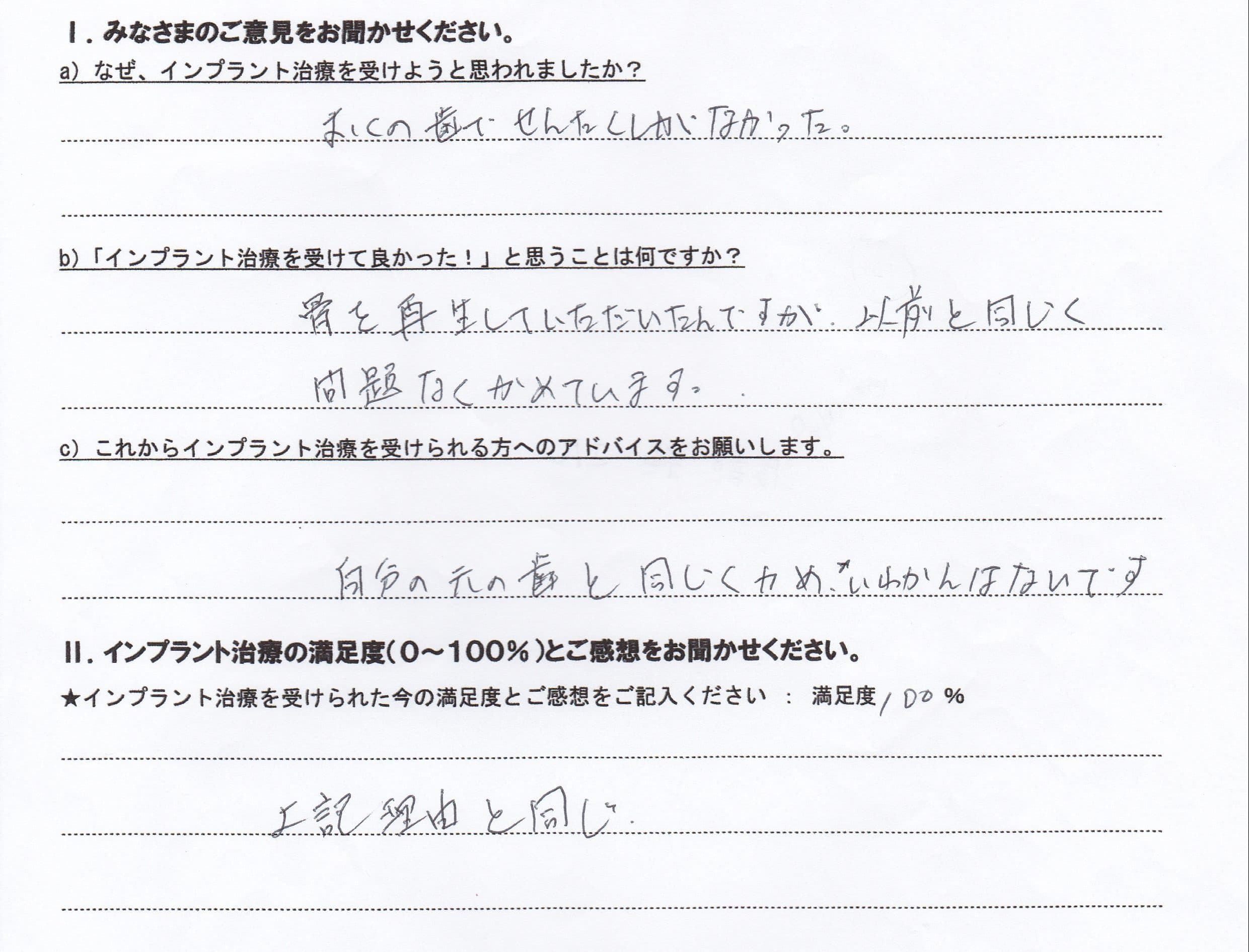【インプラント治療を受けられた方の声】 W・J様 男性