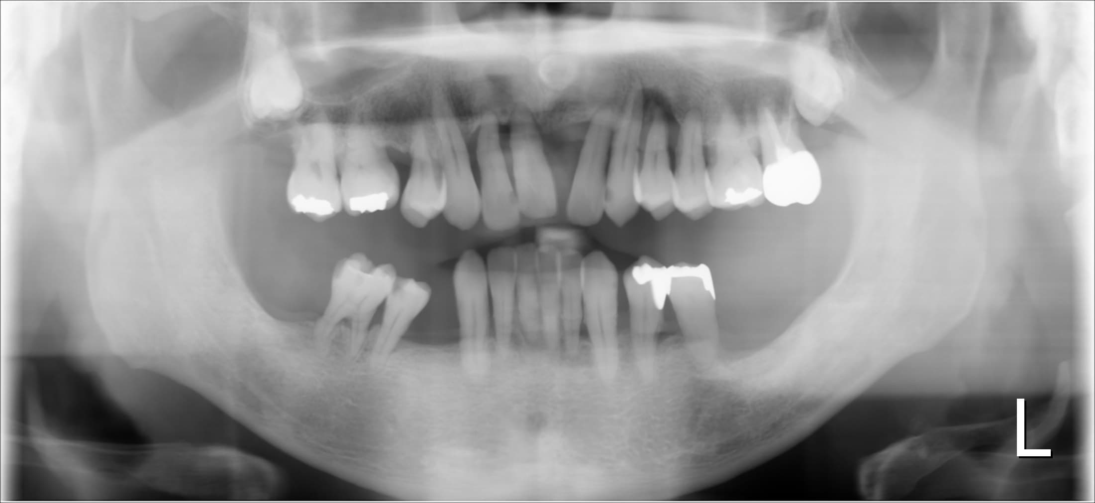 レントゲン写真を見てみると、残された歯を支える骨が殆ど無くなっていることがわかりました。