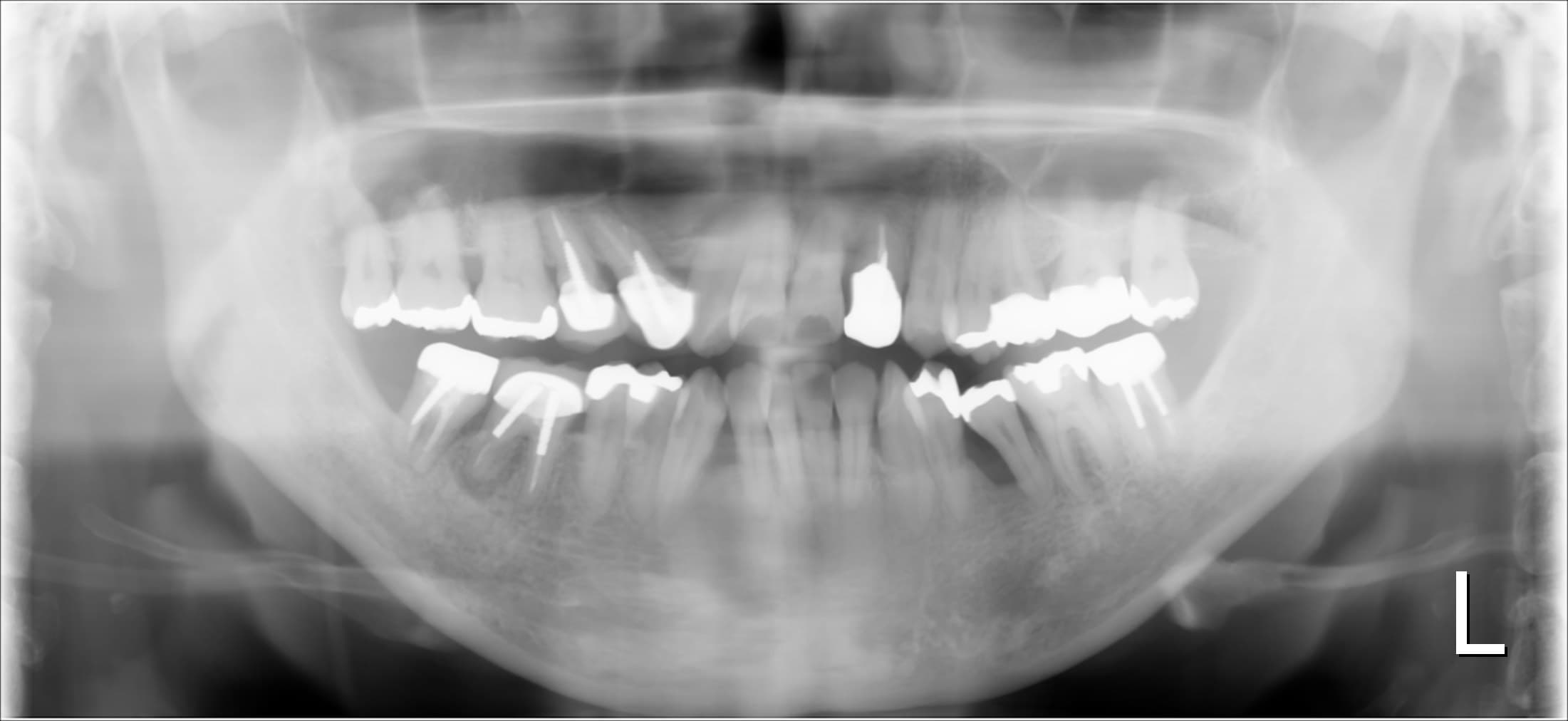 4~5年前から歯が動いている事に気付いており、そのまま元の歯科医院で定期健診を続けて経過観察をしていたそうです。