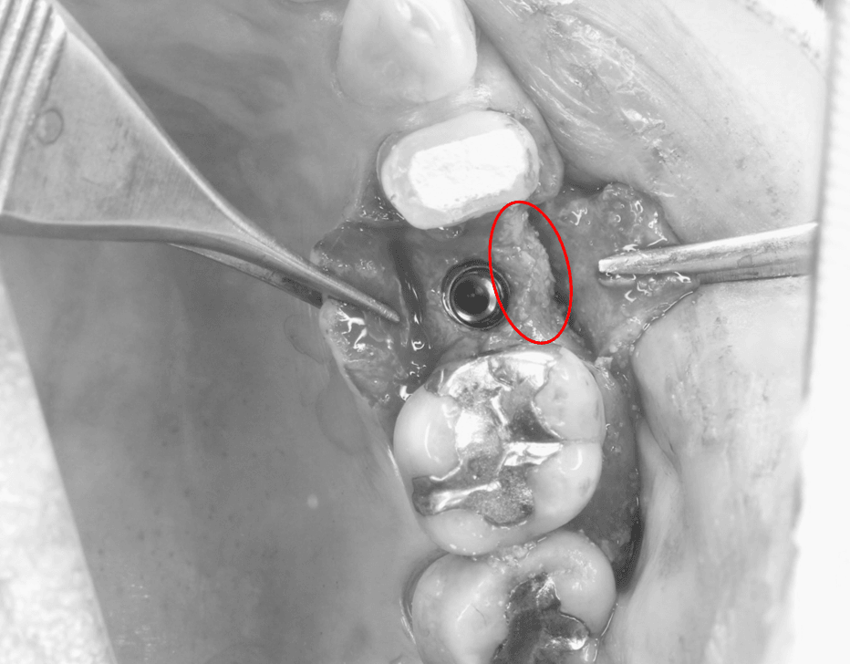 このケースは、大事な骨が細菌感染によって、大きく吸収してしまっていました。