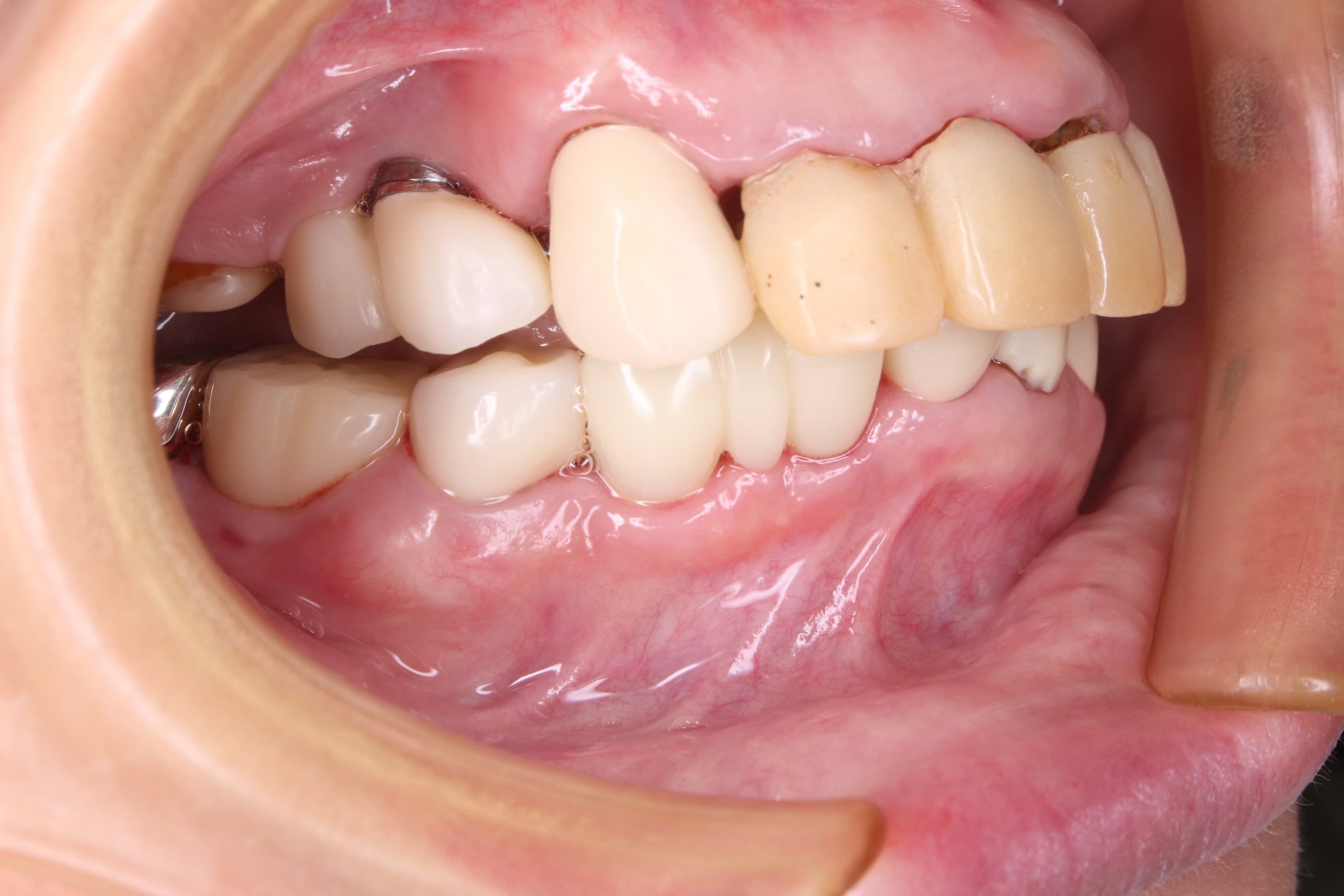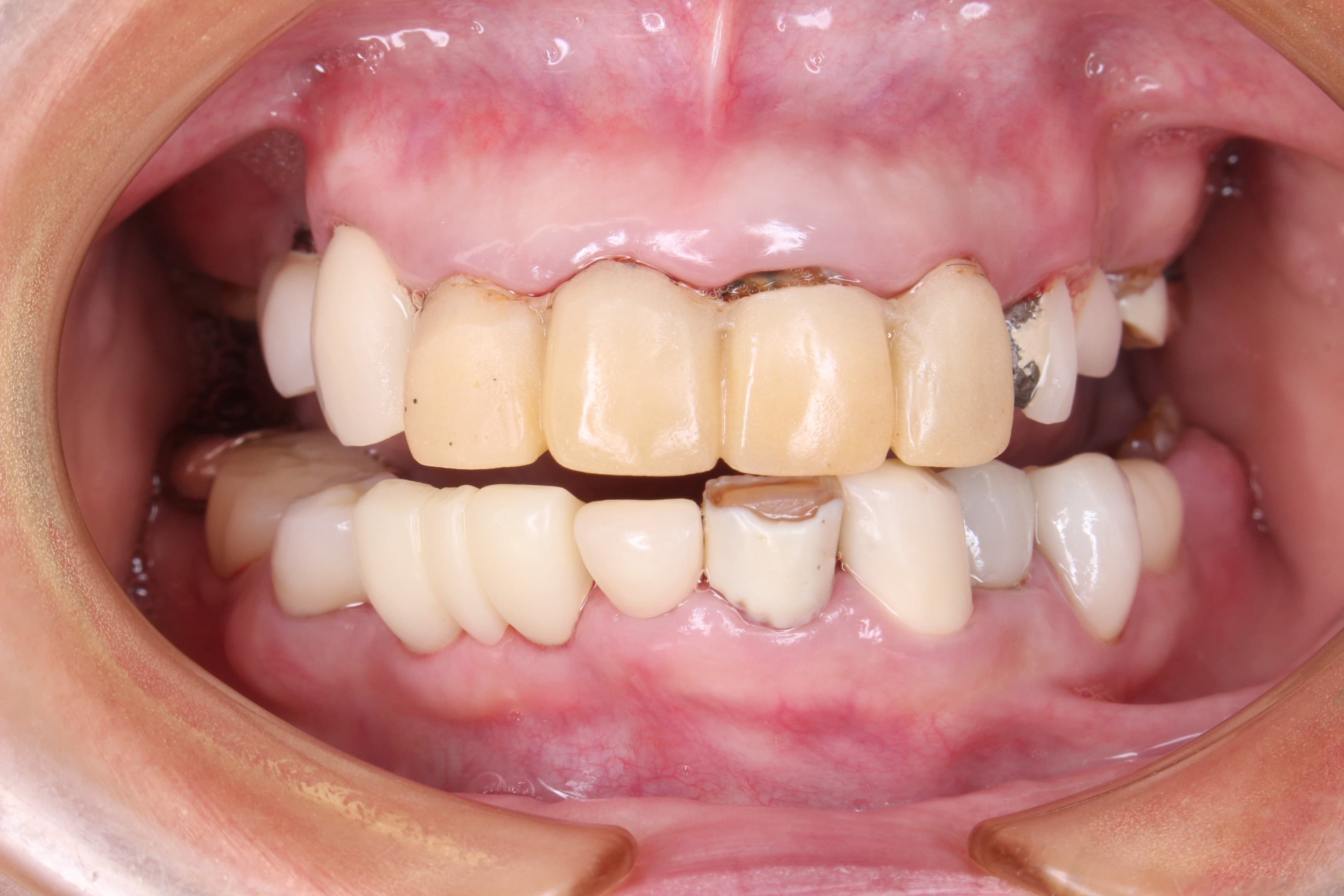 ほぼ全ての歯に被せ物等の治療がしてあることからも、歯の治療で苦労してきたことが伺えます。