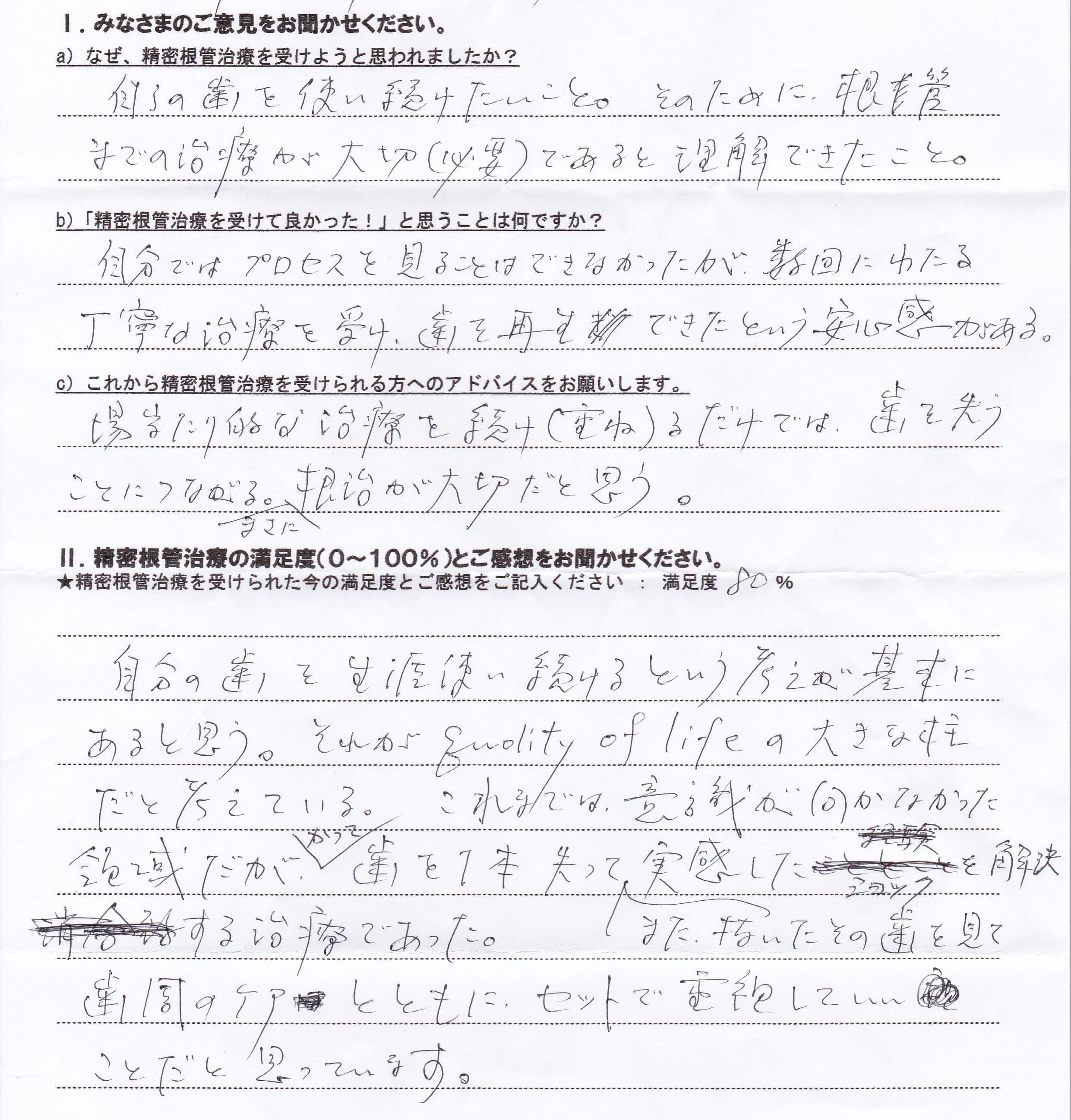 自分の歯を使い続けたいこと。そのために、根管までの治療が大切(必要)であると理解できたこと。