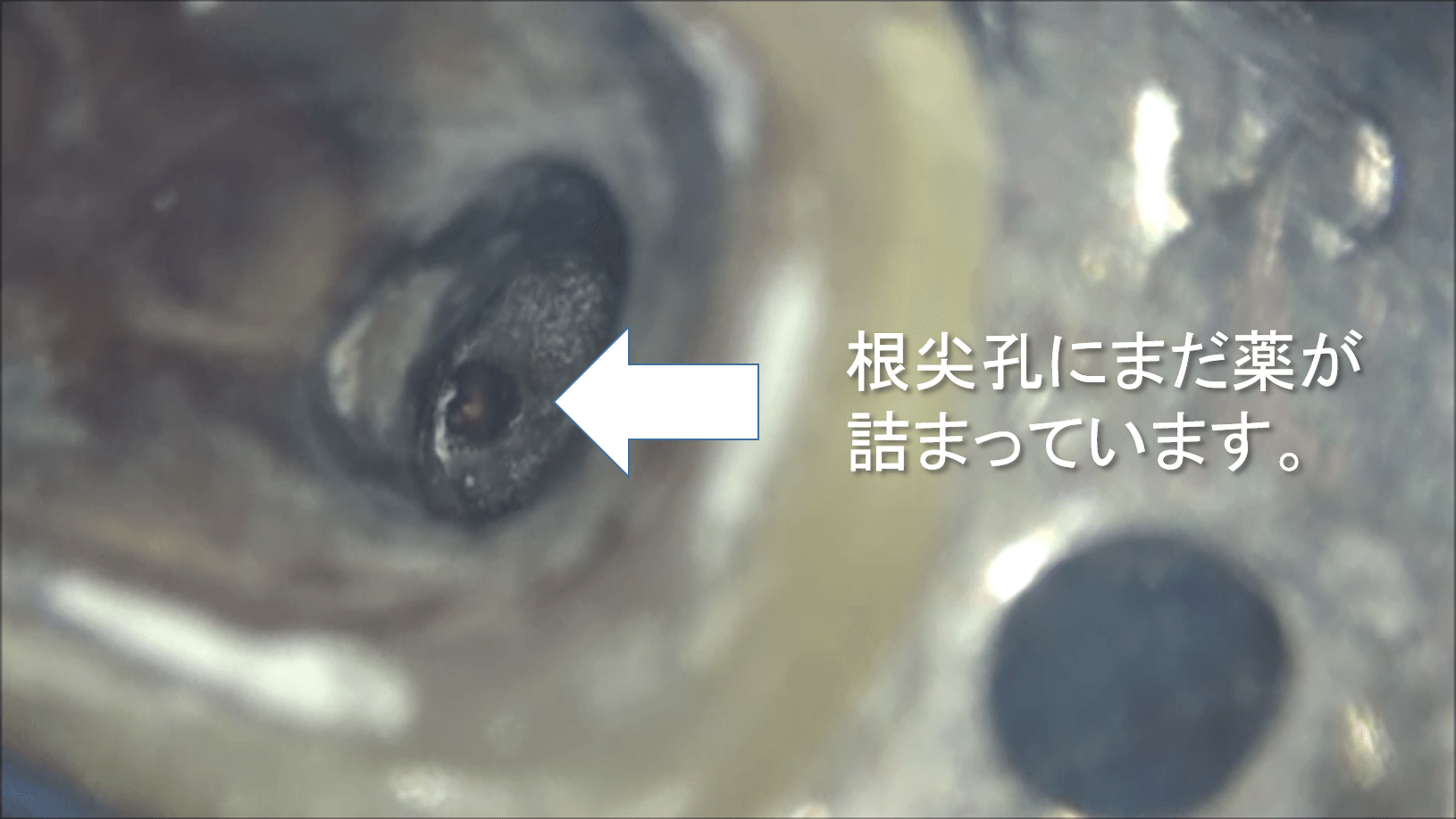 今後、数回根管内を機械的な掃除と化学洗浄を行い、徹底してきれいにしていきます。