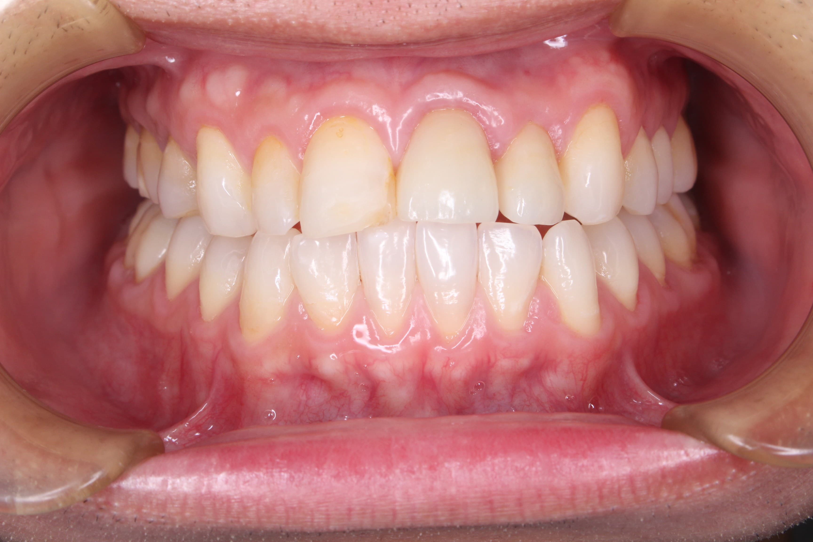 現在、歯の治療は終了し、被せ物にも満足して頂けたのですが、初診時から歯肉に炎症があり本来なら先に歯周治療をやって頂きたい状態でした。