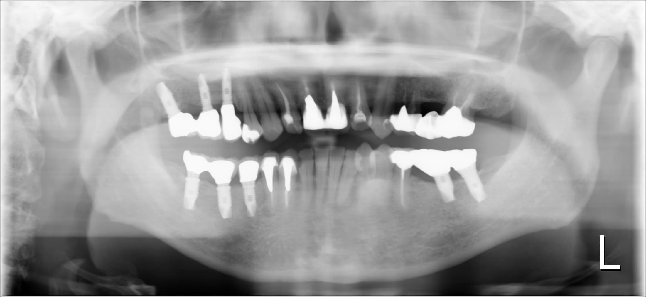 奥歯にインプラントを行っていることから、徹底した炎症のコントロールが必要ですが、残念ながら歯周病に感染しており、芳しくない事実をお伝えし、その改善のため、歯周専門治療を受けて頂く事になりました。