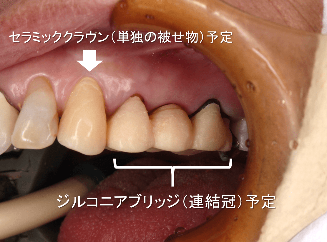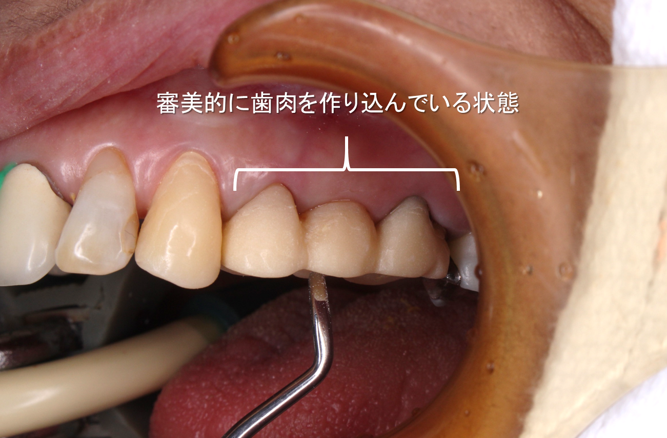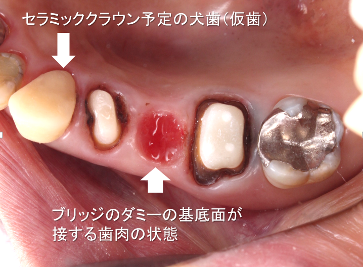 ブリッジ予定の仮歯を少し浮かせた状態の写真です。