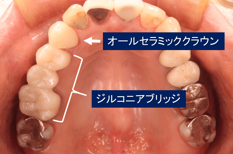 歯茎の状態もよく、補綴物(被せ物とブリッジ)も上手くいき、たいへん満足して頂きました。