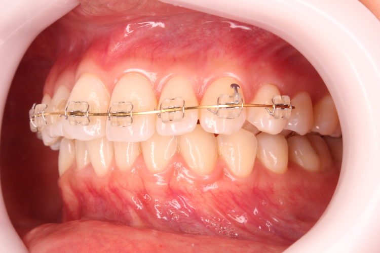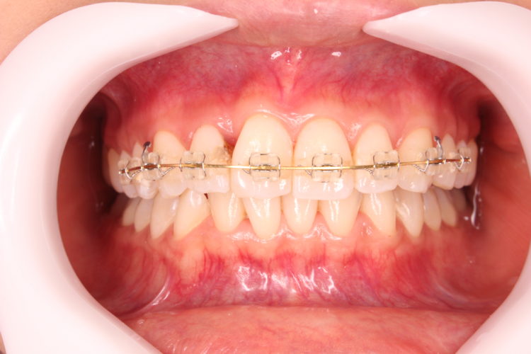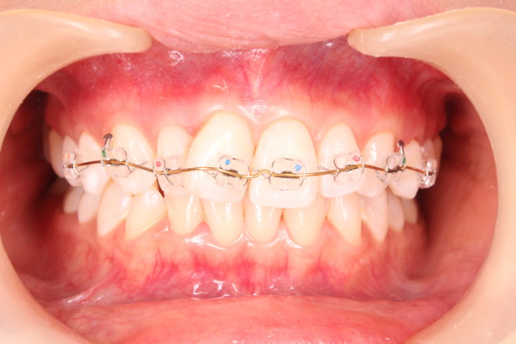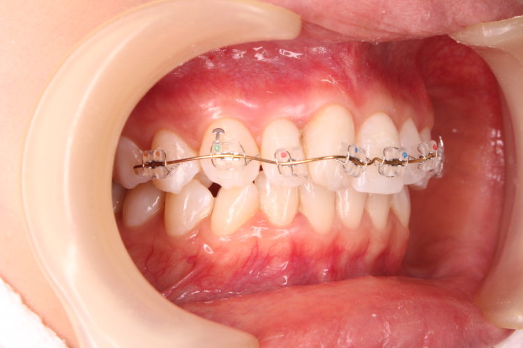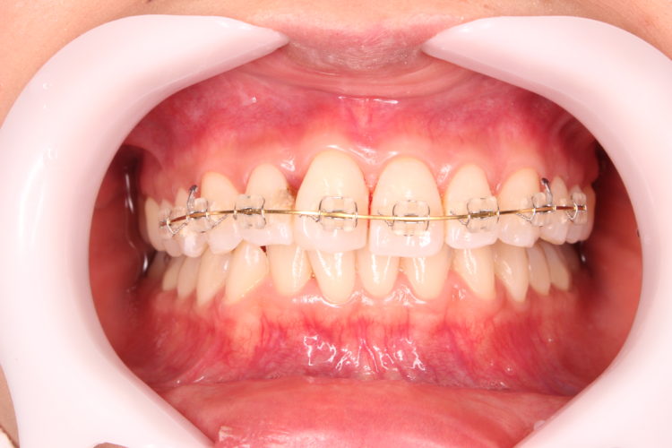 今回のケースは、部分矯正の適応と判断し、また期間も短くしたいという希望もありましたので、ブラッケトを付けてのワイヤー矯正で進めることとしました。
