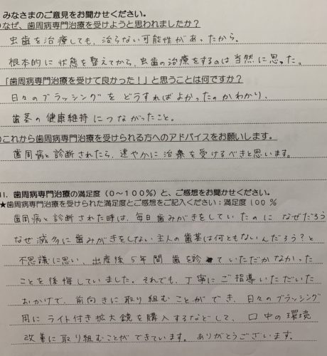 この治療をきっかけに、ご自身の健康に対する意識が変わられて、とても嬉しく思います。