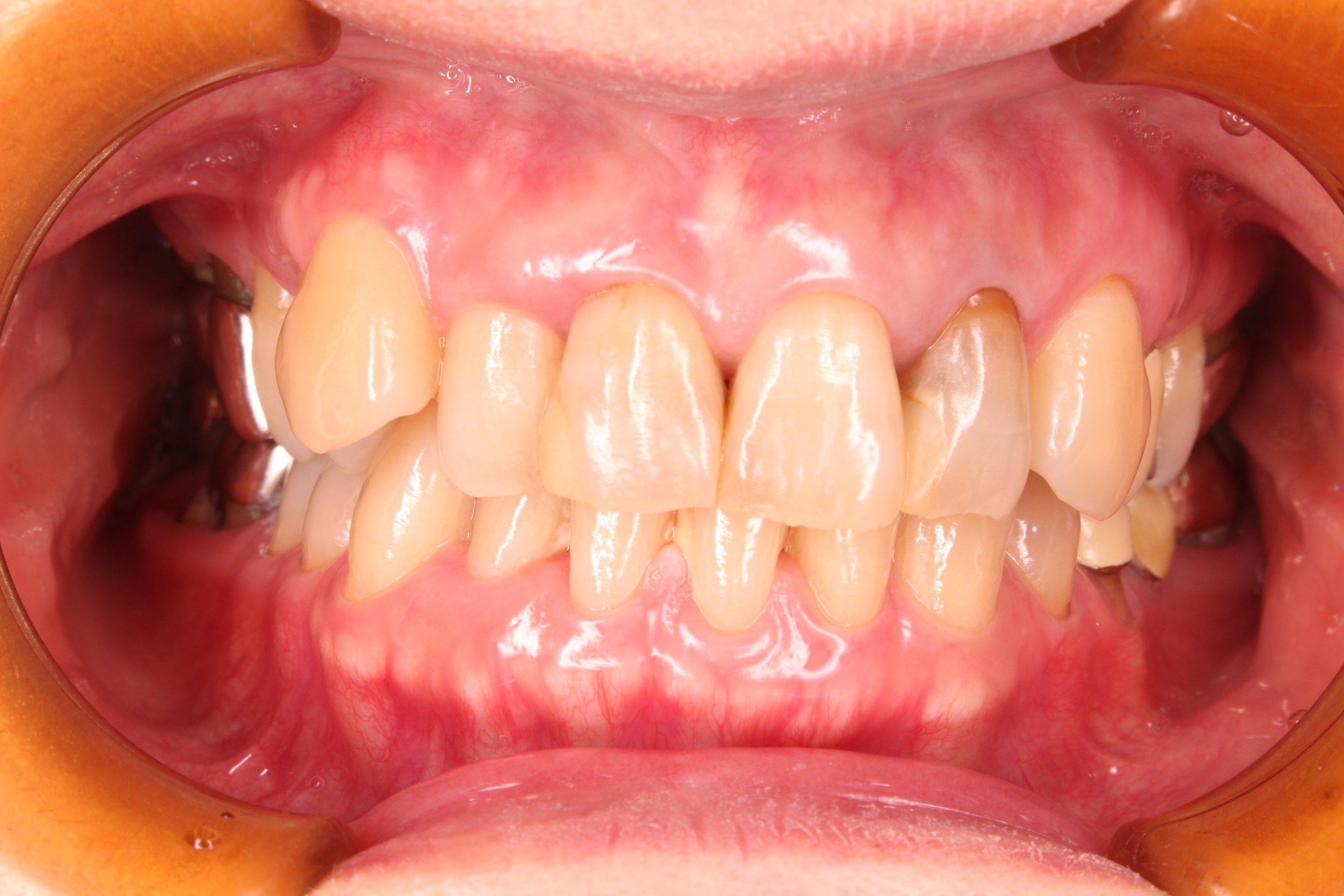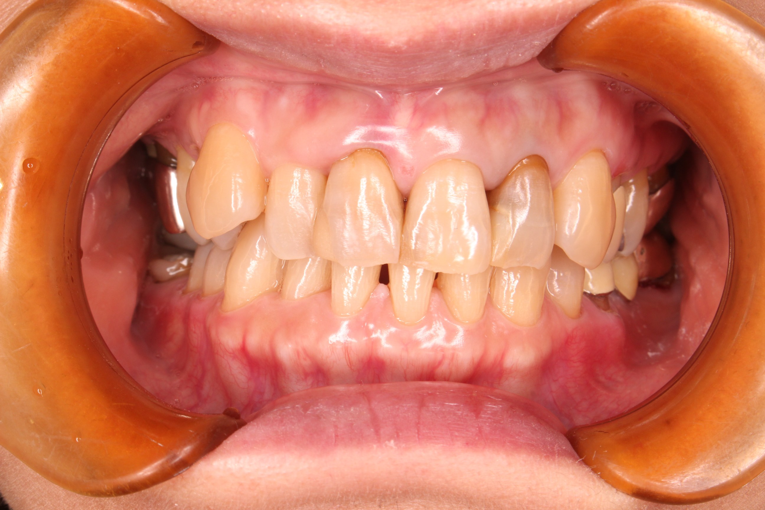 残念ながら、既に歯周病により歯を支える骨が溶けている場合、炎症が引いた歯茎は、吸収した今の骨のラインまで後退しますが、お互いに一生懸命努力した結果、とても綺麗な口腔内に戻る事ができました。