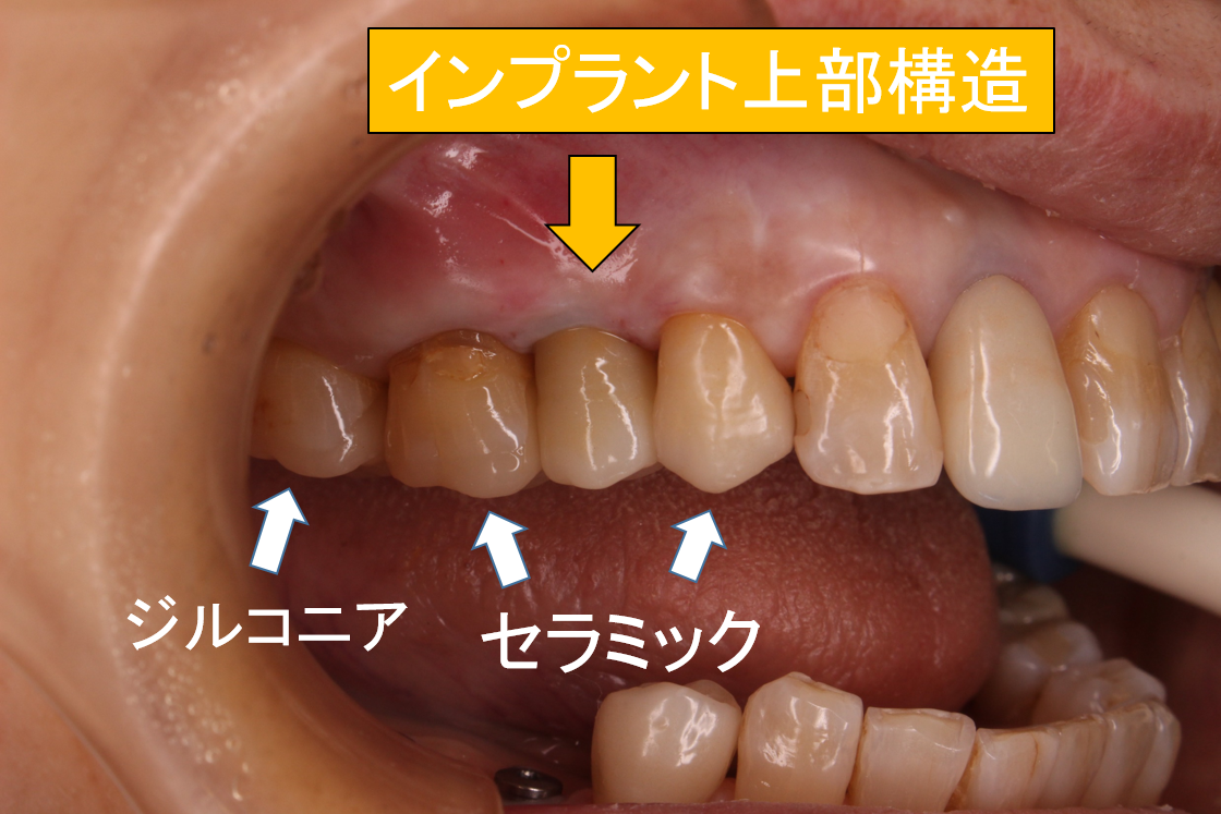 インプラントの手前の歯は、根管治療を行いセラミックの被せ物をしました。