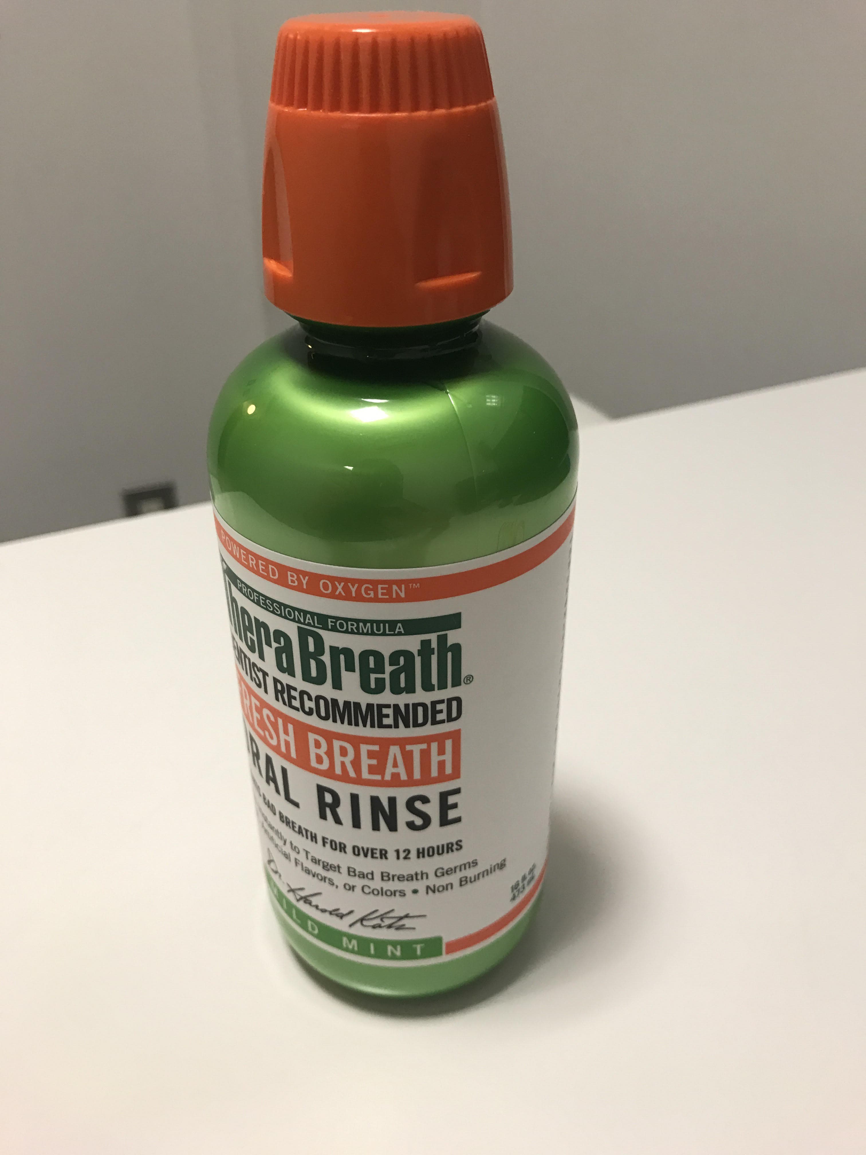 (写真は、個人的に気に入っている洗口液です。辛くなくて薄味処方です。今のところ効果は抜群なのでしばらく愛用していきます。)