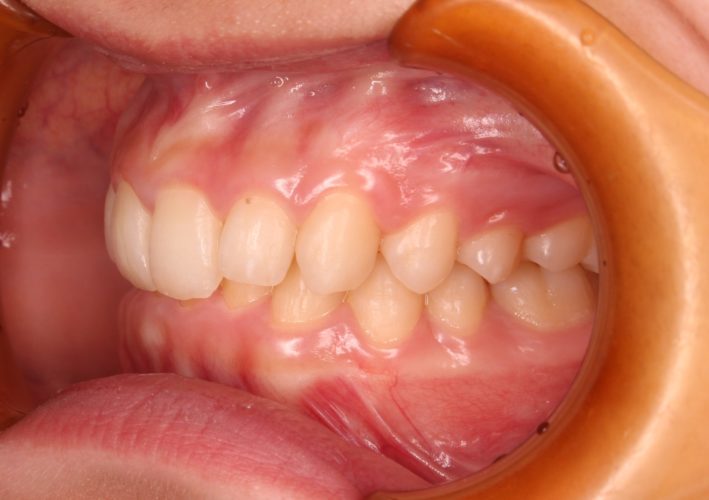 過蓋咬合といわれるケースで、下の歯が深く咬み込んでいる状態です。