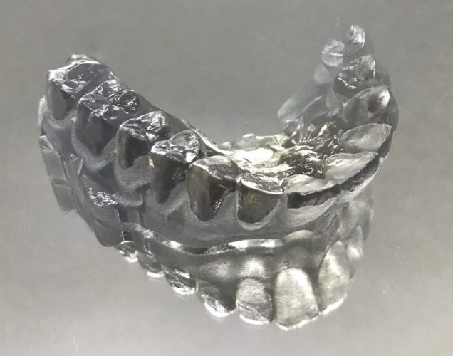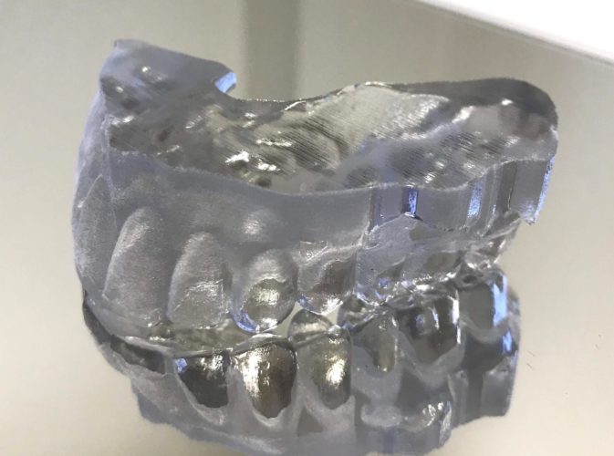 口腔内模型は、光学印象データを基に、専用の医療用樹脂で出来ています。