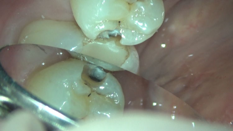 今回のケースは、詰め物の下に虫歯が残っていたため、患者さんのご希望もあり、セラミックでの治療を行いました。