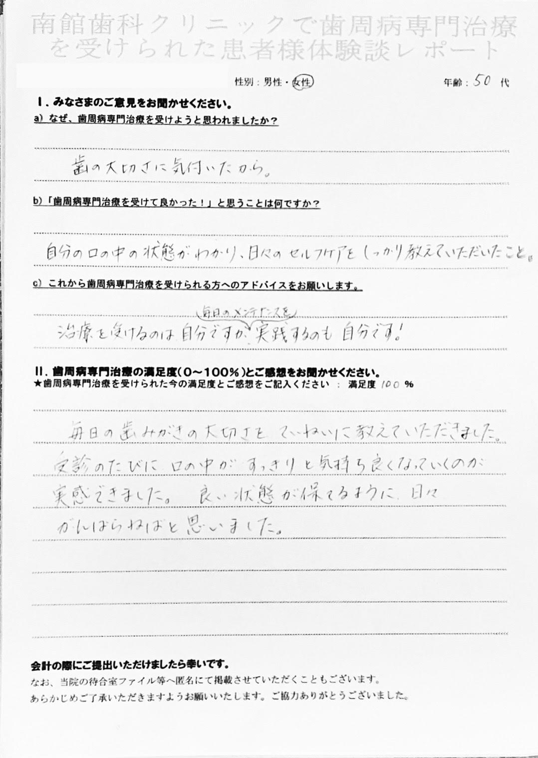 歯周専門治療を受けた方の声をご紹介します。