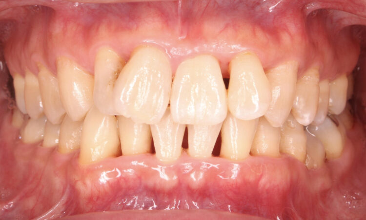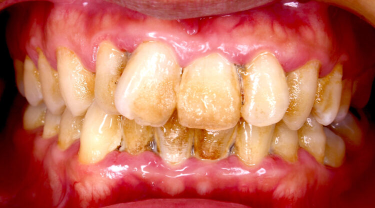 歯ぐきが赤黒く、ぷよぷよした典型的な歯周病。