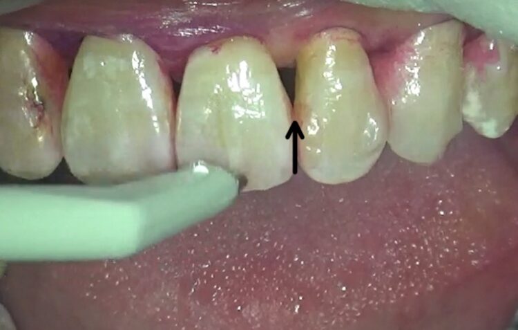 ところが、歯と歯の間にプラークが残ってしまっています。
