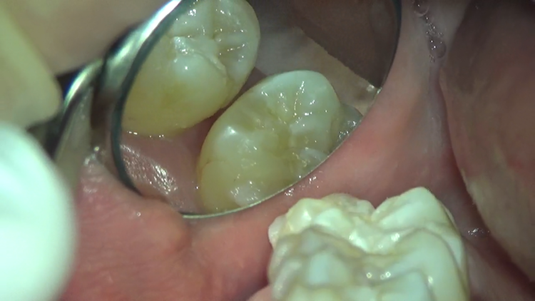 今回も、挟まっていた場所が左上の奥歯。鏡では見にくい場所です。