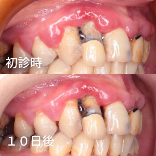 初診時と、本当の歯磨きを行ってから10日後の写真↓