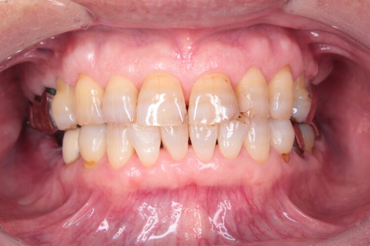 歯茎が腫れてしまって、歯と歯のすき間が埋まってしまっています。