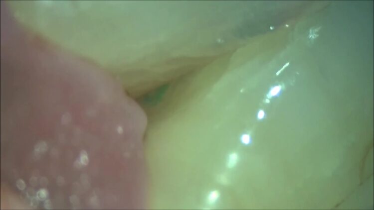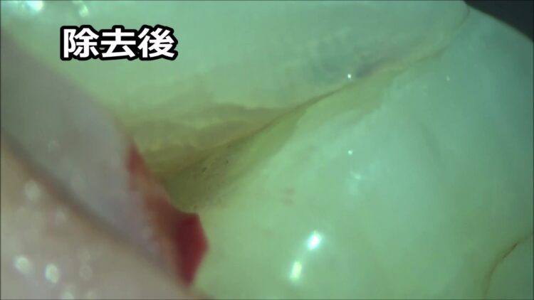 ほんの少ししか付いていませんでしたが、あの細菌が亀裂から侵入し、歯の中で虫歯が進行するので要注意です。