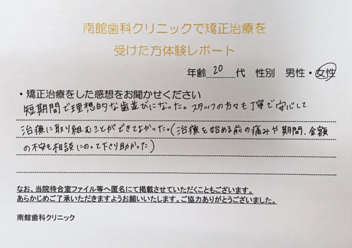 今回は、インビザラインでの矯正治療を受けていただいた方の治療後のアンケートを紹介させていただきます。