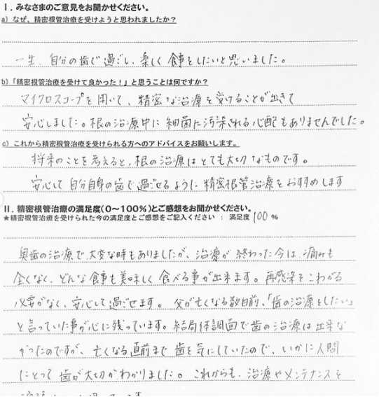 【患者様の声】精密根管治療を受けた50代女性の方です