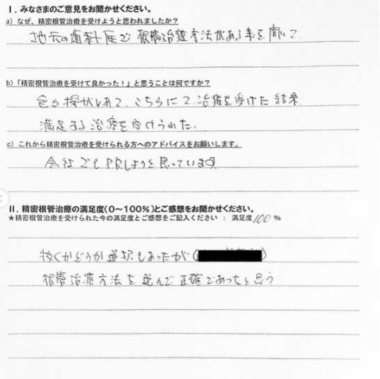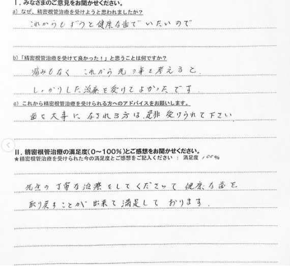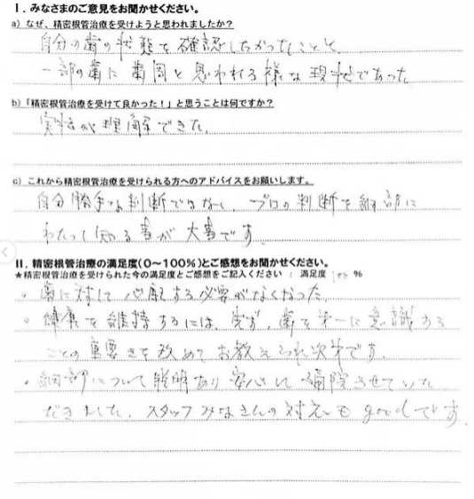 こんにちは! 南館歯科クリニックの歯科衛生士 山崎です。 精密根管治療を受けた方の声をご紹介します。 治療をやって良かったと仰って頂けることが、一番の励みになります! ありがとうございますǶ…