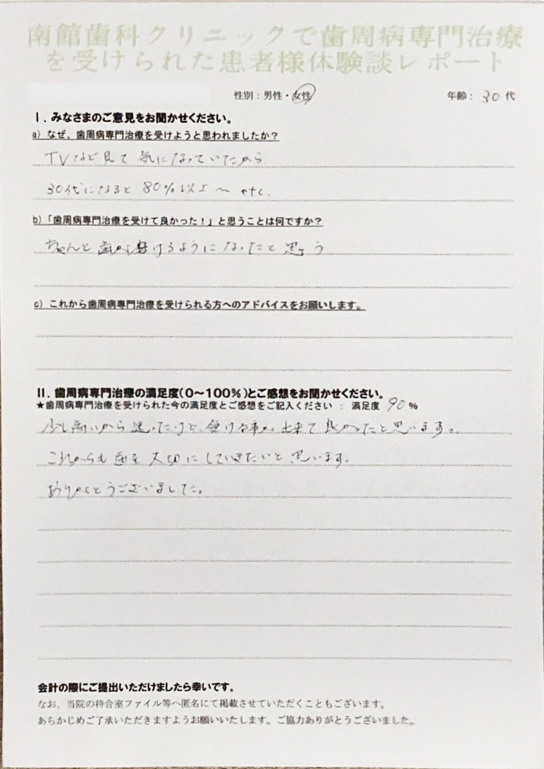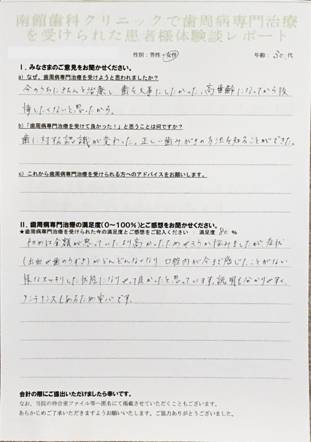 【患者様の声】歯周専門治療を受けた30代女性の方です