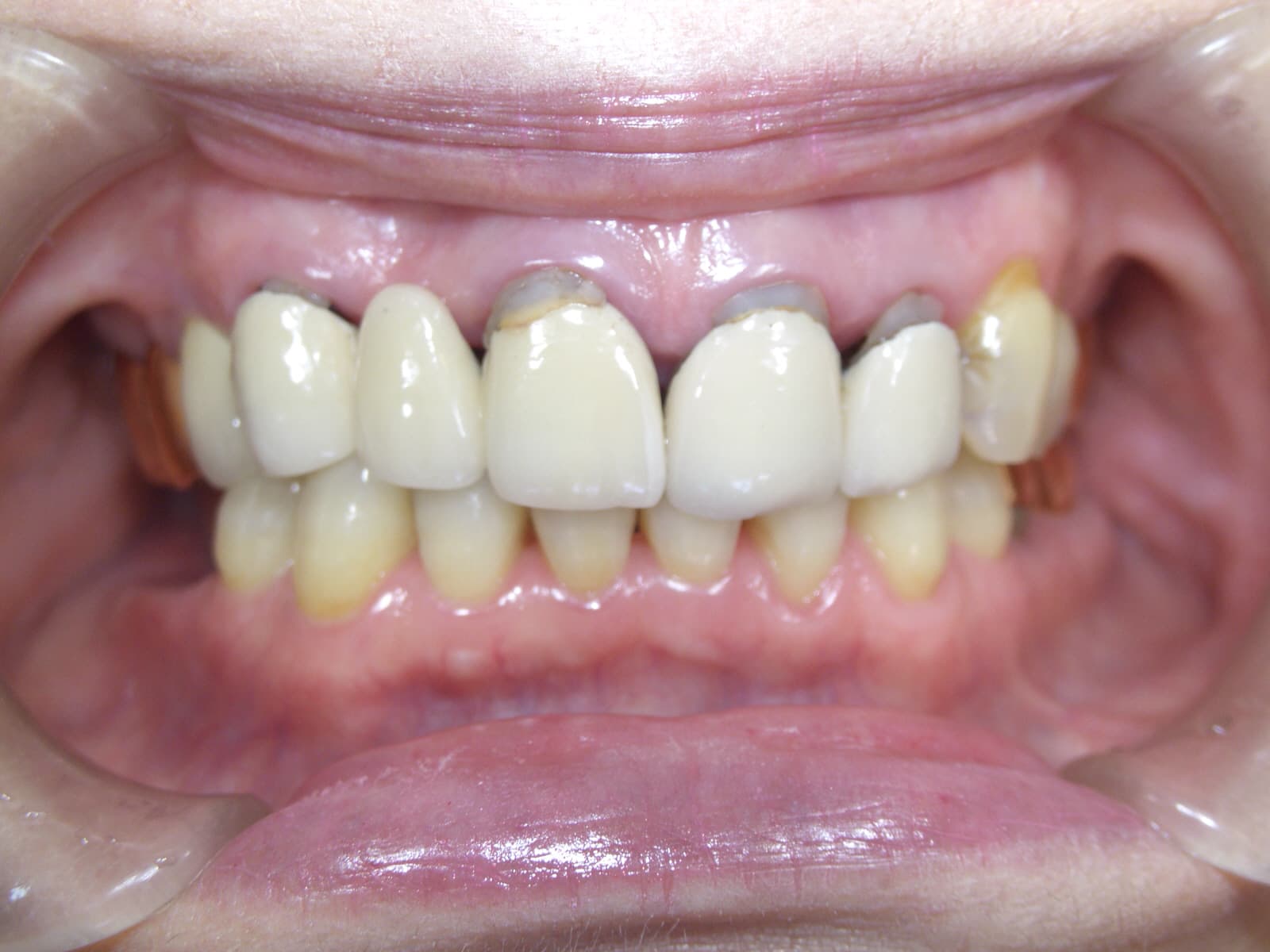 衛生士の山崎です。 20年前に治した前歯のブリッジを再治療をしたいと来院されました。 ブリッジ治療の後に、歯茎の際を覆う治療がしてあり、その周りが腫れているのも分かります。 まさかこんな…