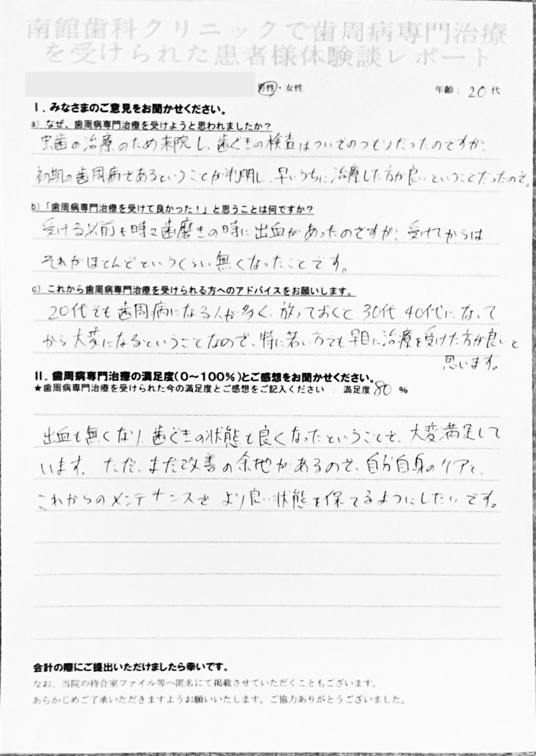 【患者様の声】歯周専門治療を受けた20代男性の方です