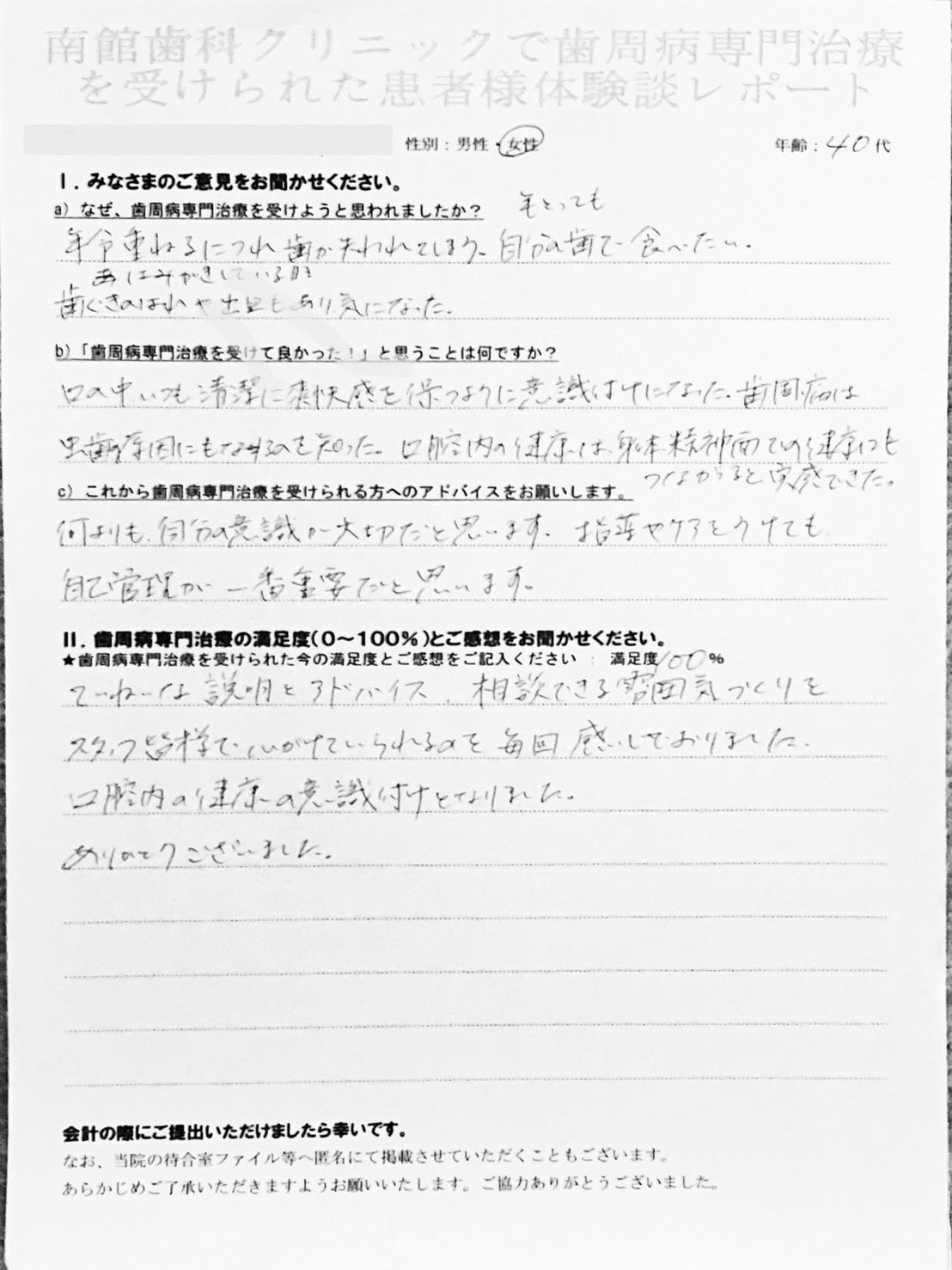 【患者様の声】歯周専門治療を受けた40代女性の方です