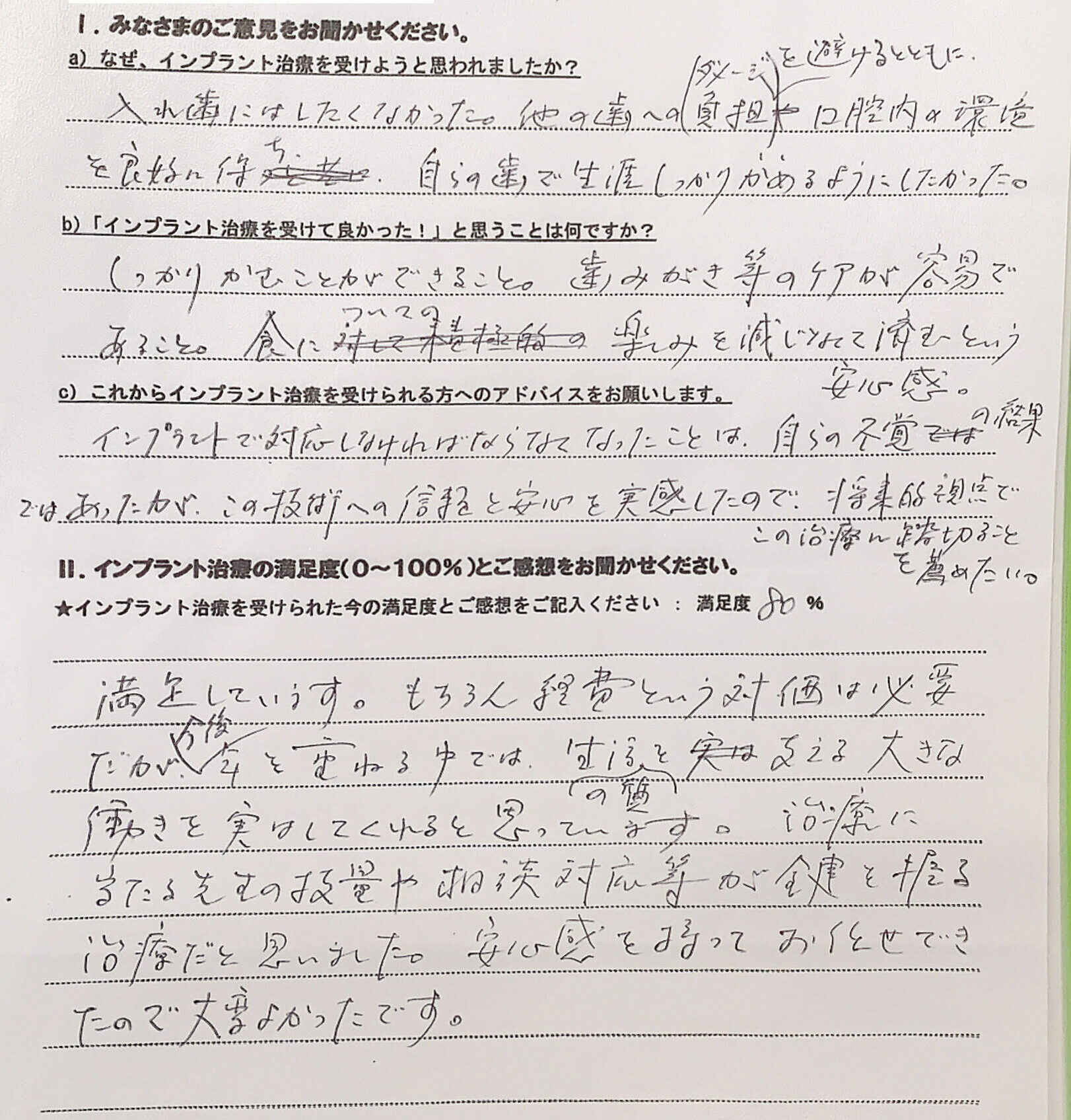 インプラント患者様の声精密根管治療(マイクロエンド)
