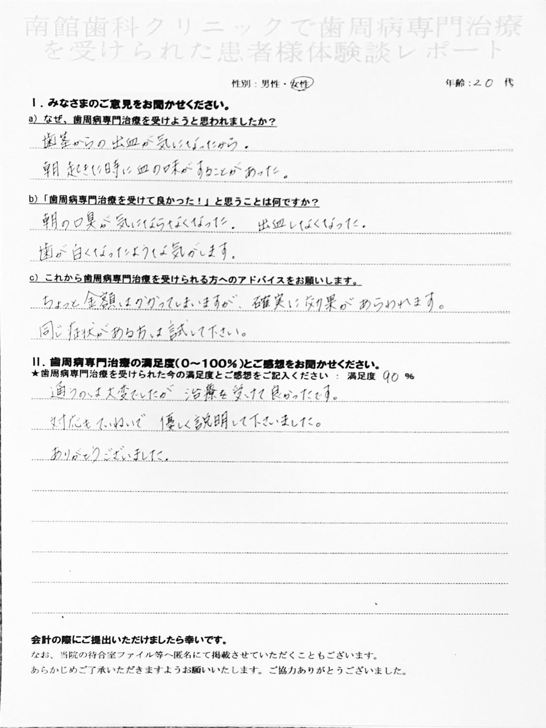 【患者様の声】歯周病専門治療を受けた20代女性の方です。
