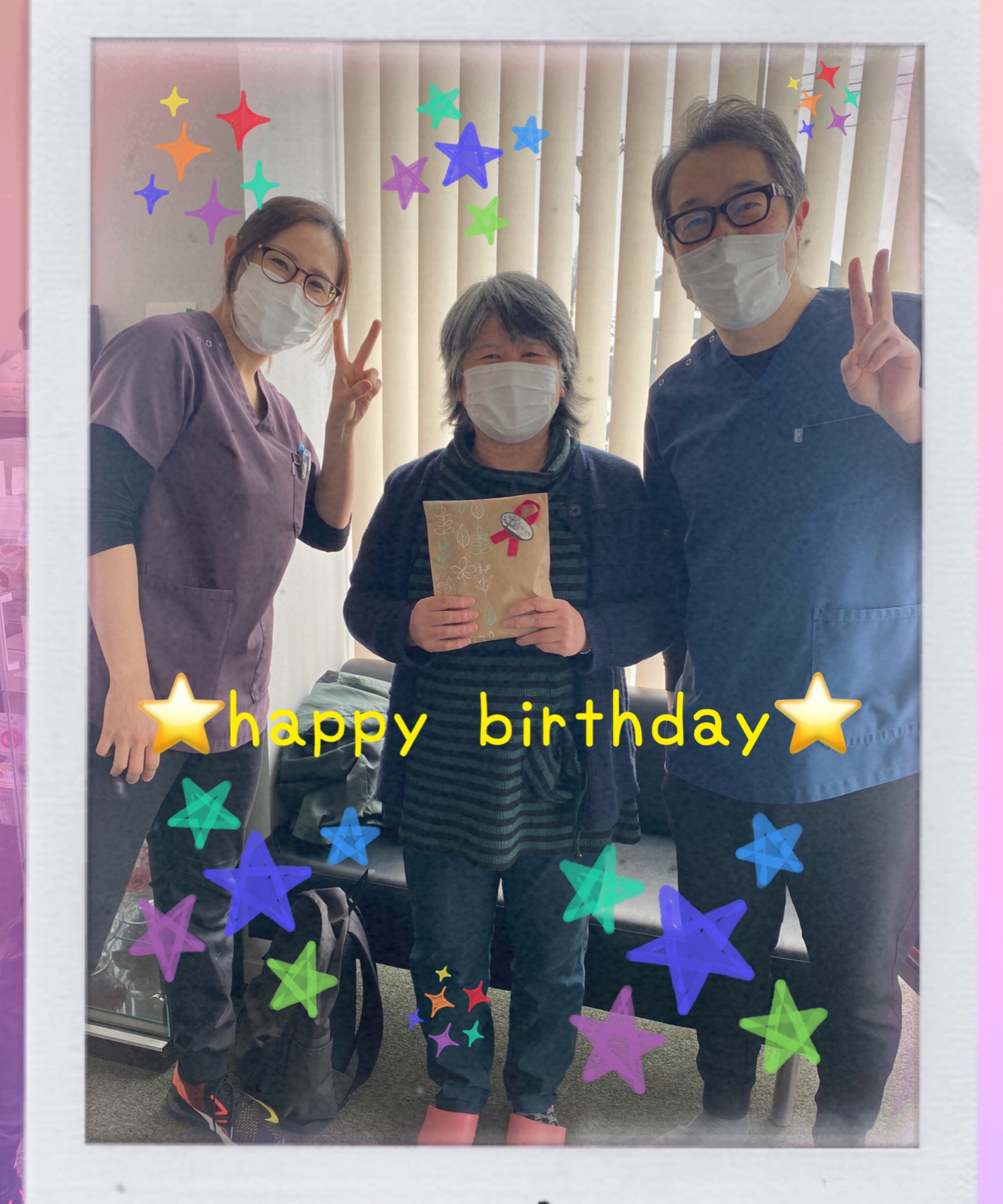 こんにちは。 南館歯科クリニック、歯科衛生士の佐藤です。 ○○さん。お誕生おめでとうございます(^^♪ いつも笑顔で治療にいらしていただき、ありがとうございます。 もう少し…