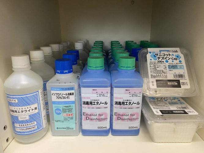 南館歯科クリニックでは、手指消毒用のものも含めて必要量を備えています。