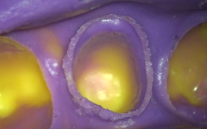 最終補綴物と歯の境目となるマージンといわれる部分を、マイクロスコープを使って正確に形成し、専用のシリコン材で明瞭に記録を採ることにより、極めて適合の良い被せ物や詰め物を作製することが可能となります。