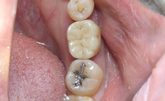 ところが、ファイバーポストは歯のように光を通すのでとても自然な感じになります。(上写真)さらに金属イオンにより歯肉がやせたり、黒ずむのも防ぐことができます。