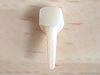 そこで歯の土台になる部分(これをポストといいます)を作ります。その材料には①ファイバーポスト、②金属ポストがあります。