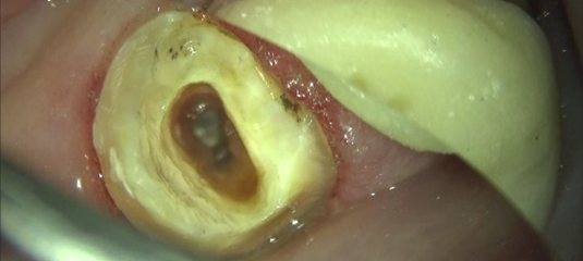 根管治療菌极端切除術根尖の腫(嚢胞)や、根管治療の予後が悪い場合などに、歯根の尖端部分を切除する処置です。
