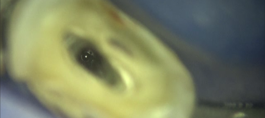 A神経管の直径は、一般的に0.25mm~1.20mm程度です。 口腔内は暗くて、根管は細いことから、肉眼だけでなく、歯の内部をほぼ真上から十分な光量で観察しながら治換できるマイクロスコープが必要とされます。