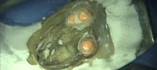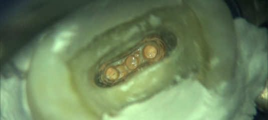 いくらラバーダム防湿を行っても、ラバーを完全に維持する壁がなければ、隙間ができ、そこから唾液が侵入し、唾液経由で根管内に細菌が入ってしまい、治療自体が台無しになってしまうので、隔壁処置はとても重要な処置となります。