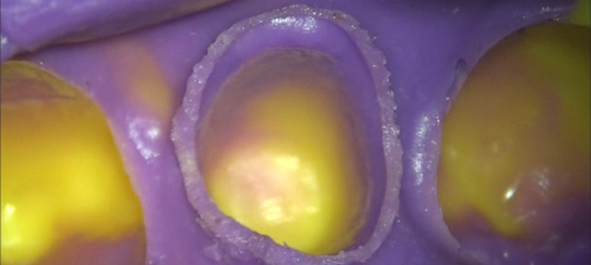全周に壁ができたことで、しっかりとラバーダムを装着することができます。