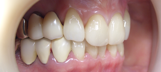 精度の高い補綴治療(クラウン等)は、歯の削り出しや型どりの段階から、高い精度が求められます。ここでもマイクロスコープを使用し、慎重に形成(削り出し)を行ったあと、シリコン材を用いて正確に型どりをし、肉眼での治療とは別次元の精度の被せ物を作製し、接着します。