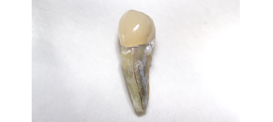 緊密に根管内を封鎖する根管充填処置を行った後、次は支台築造(コア・ファイバーコア)を行っていきます。根管治療を行った歯は、竹筒のように中が空洞化しています。(ただし根管部分は、根管充填により封鎖されています。)したがって、このままでは強度は勿論のこと、最終的な補綴治療(被せ物等)が行えないので、土台を作ることになります。これは、根管内が再度汚染されないようにする目的も兼ねていますので、大切な治療となります。