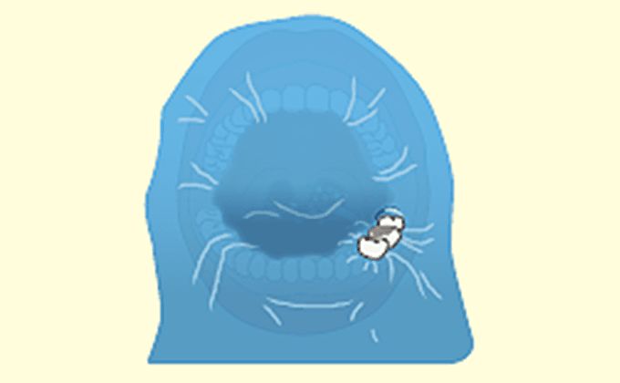 虫歯を完全に取り除いたら、次に、ラバーダム防湿(ゴムのマスク)を行います。ここで重要なのは、隙間から唾液が侵入しないこと、治療中の強力な薬剤が口腔内(お口の中)に漏れないようにしなければならないということです。